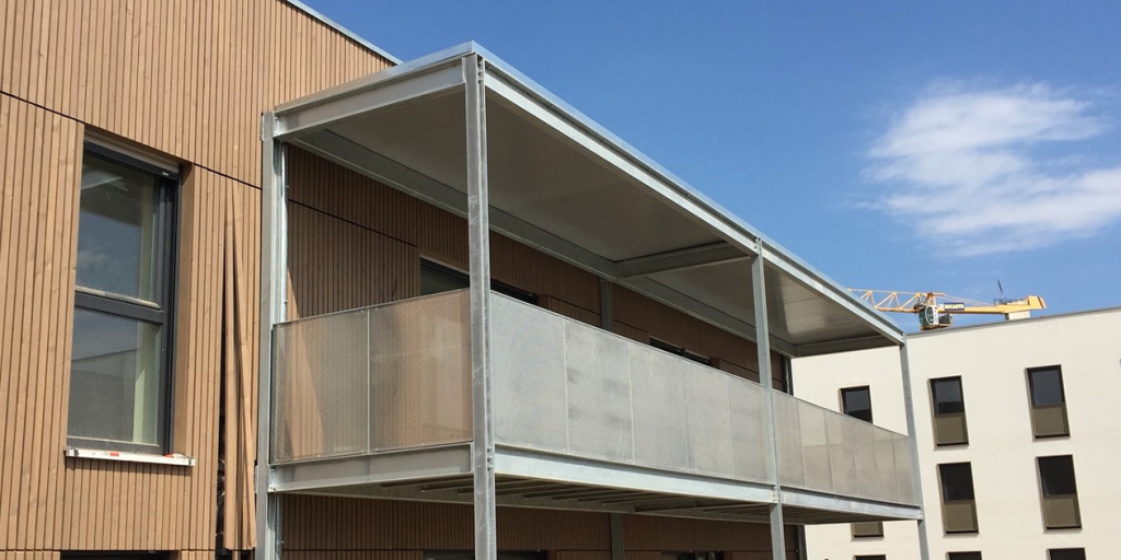 On utilise de plus en plus fréquemment ce type de balcon métallique rapporté pour les logements collectifs, mais aussi pour les maisons individuelles. En effet, il offre de nombreux avantages au niveau thermique et acoustique du fait de son indépendance. Côté esthétique, vous pouvez choisir entre plusieurs modèles de plancher et de garde-corps.